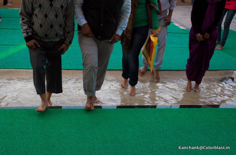 Da lobe ich mir die lösung in Amritsar im Harmandar Sahib, dem heiligtum der Sikhs: eine rinne mit warmem wasser, drinnen ist jeder willkommen, voraussetzung die hände und füße sind sauber, und das gesamte gelände wird ständig sorgfältig gereinigt.
